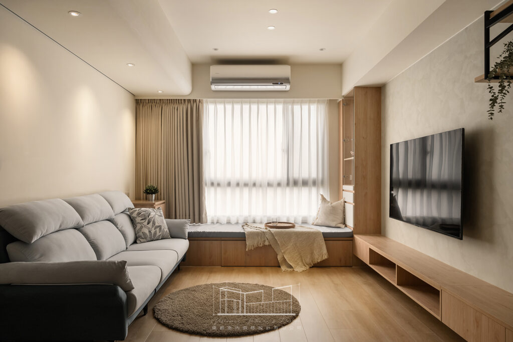 竹北裝潢案例|低彩度客廳設計,隱藏收納與間接照明配置
