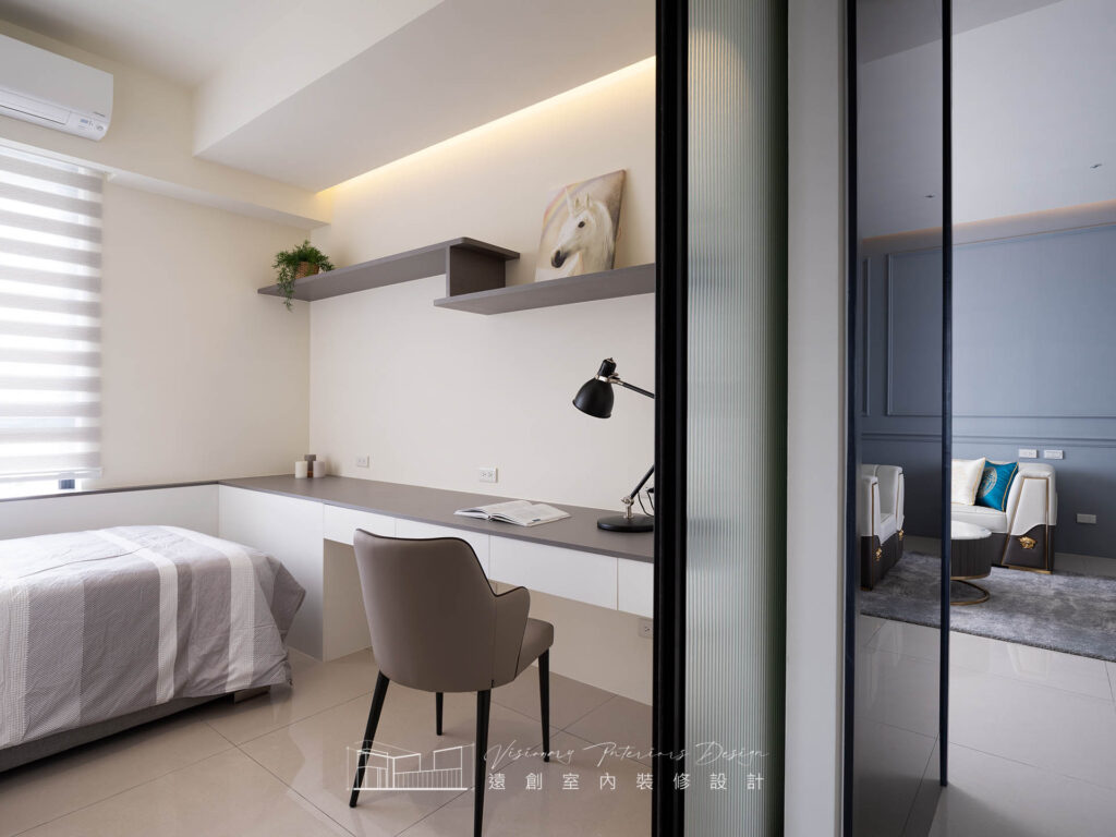 這次我們位於 竹南 裝潢 設計作品中強調簡單的線條和精緻的細節,以營造出整體的和諧感。淡淡的藍紫色調為空間帶來一絲柔和的浪漫氛圍,既能讓人感到平靜舒適,又能營造出一份神秘的氛圍。